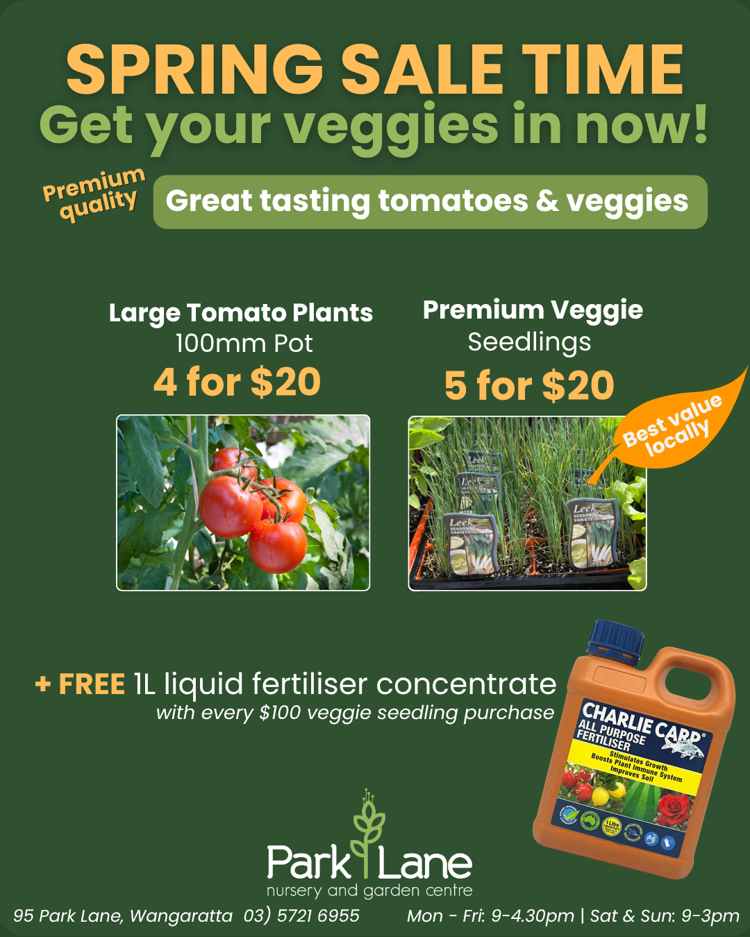 Plus, get a FREE liquid fertiliser with every $100 veggie seedling purchase!